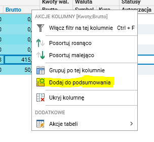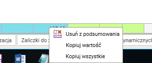 Aby skopiować wartość podsumowań do schowka, należy kliknąć prawym przyciskiem myszy na podsumowaniu.