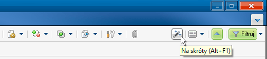 Okna aplikacji w wersji 86 zostały wzbogacone o nowe menu umożliwiające szybkie wywołanie dowolnej aktywnej akcji dostępnej dla bieżącego okna. Menu Na skróty można otworzyć poprzez wybór dedykowanego przycisku z paska narzędzi bądź przy użyciu skrótu klawiszowego Alt+F1.