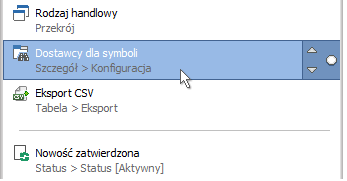 Po prawej stronie znajdują się też przyciski sterujące kolejnością elementu oraz przycisk pozwalający na usunięcie go z tej grupy.