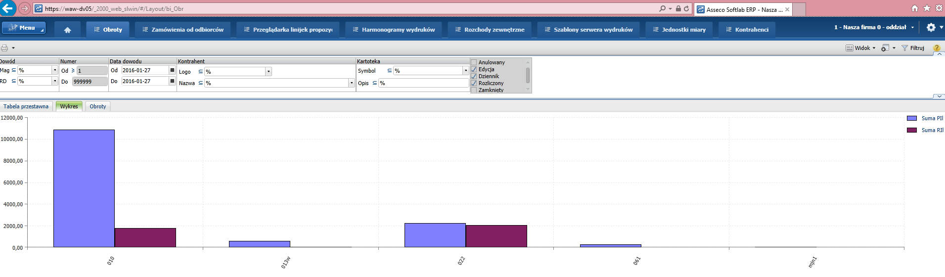 W związku z występowaniem w wersji EXE komponentów wykresowych „OWC” dodano do wersji WEB możliwość prezentowania tychże wykresów. Wykresy są jedynie wizualną formą prezentacji i nie można ich zmieniać przy użyciu aplikacji dostępowej WEB.