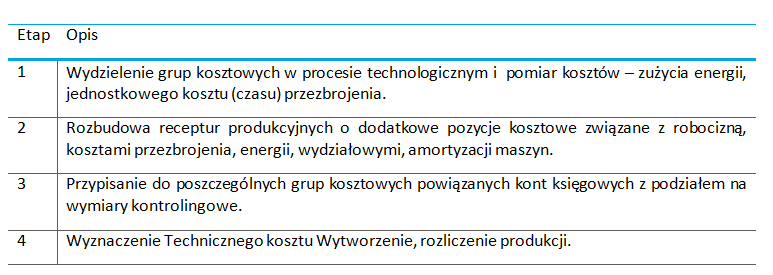 • Możliwość analizy kosztów w całym procesie technologicznym.