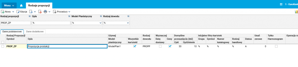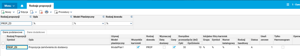 W systemie został przygotowany predefiniowany rodzaj propozycji stosowany w procesie zamówień do dostawców.