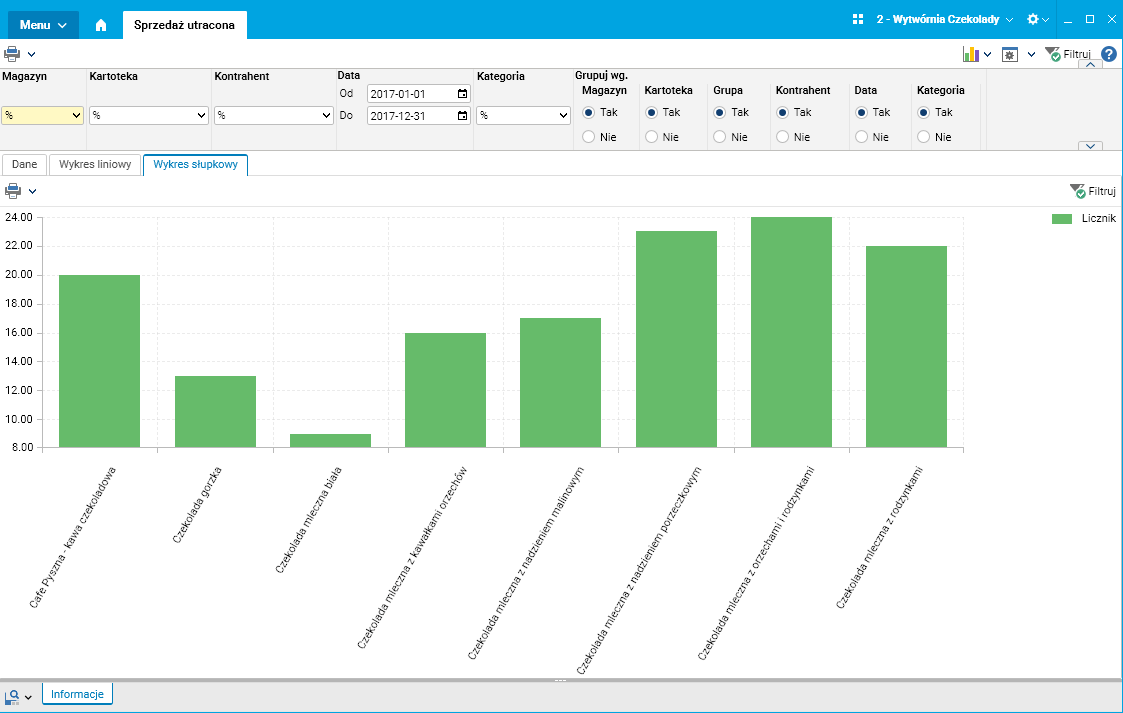 Analiza tych danych pozwoliła podjąć decyzję o zwiększeniu produkcji asortymentu, na który jest największe zapotrzebowanie.