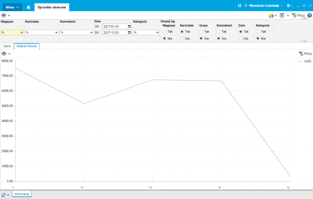 Rys. 9 Analiza sprzedaży utraconej w postaci wykresu liniowego