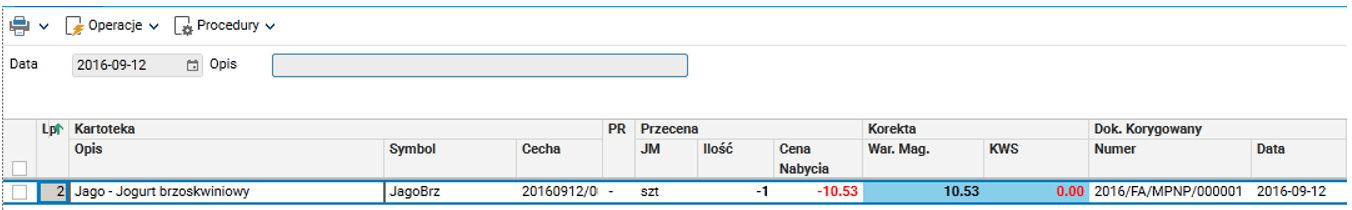 • Dokument korekty przychodu PZK mógł skorygować wartościowo wyłącznie jedną, pozostającą na stanie magazynowym, sztukę towaru.