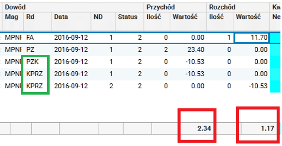 • Kwoty, które rozdzielają się na korektę wartości magazynu, tj. na tą którą możemy skorygować oraz pozostałą, której sama PZK skorygować nie może.