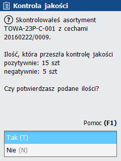 Rys. 4. Kontrola jakości – potwierdzenie wprowadzonych ilości
