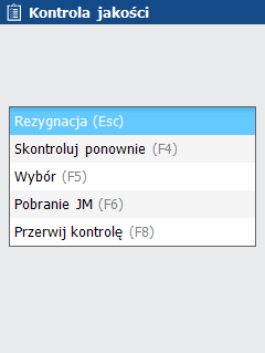 Rys. 5. Kontrola jakości – menu dostępne z ekranu wyboru asortymentu