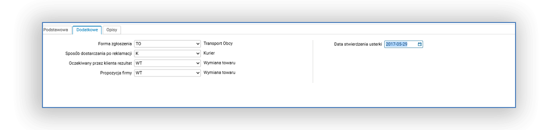 Rys 2. Edycja nagłówka reklamacji – zakładka Dodatkowe