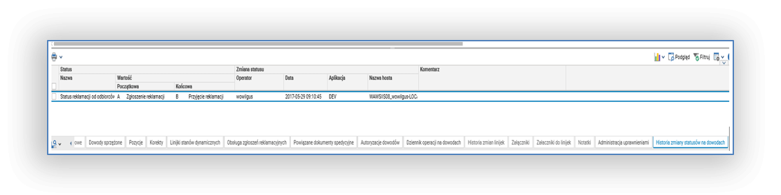 Rys 7. Przyjęcie 2 reklamacji (zmiana statusu)
