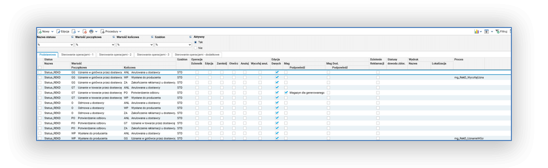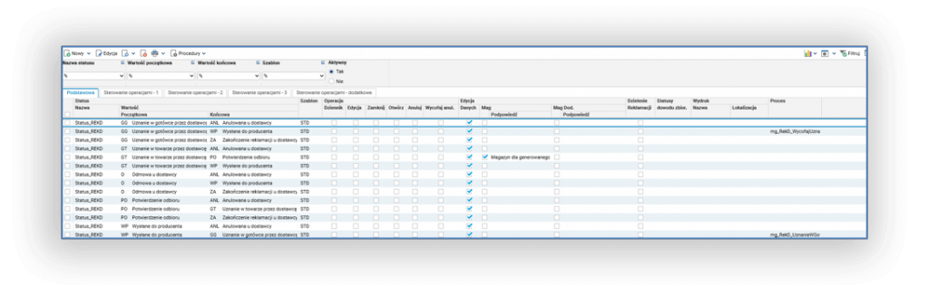 Rys 6. Konfiguracja przejść statusów reklamacji