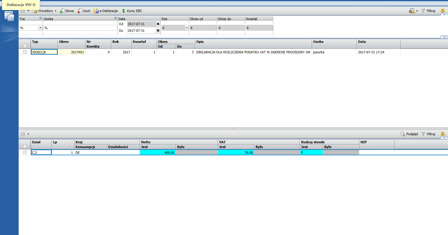 Rysunek 6. Deklaracja VIU-D w module e-deklaracji