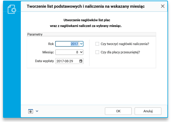 • Utwórz listy podstawowe i naliczenia za wskazany miesiąc,