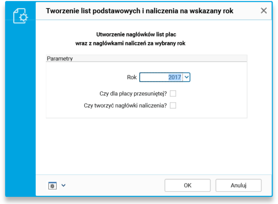 • Utwórz listy podstawowe i naliczenia za wskazany rok.