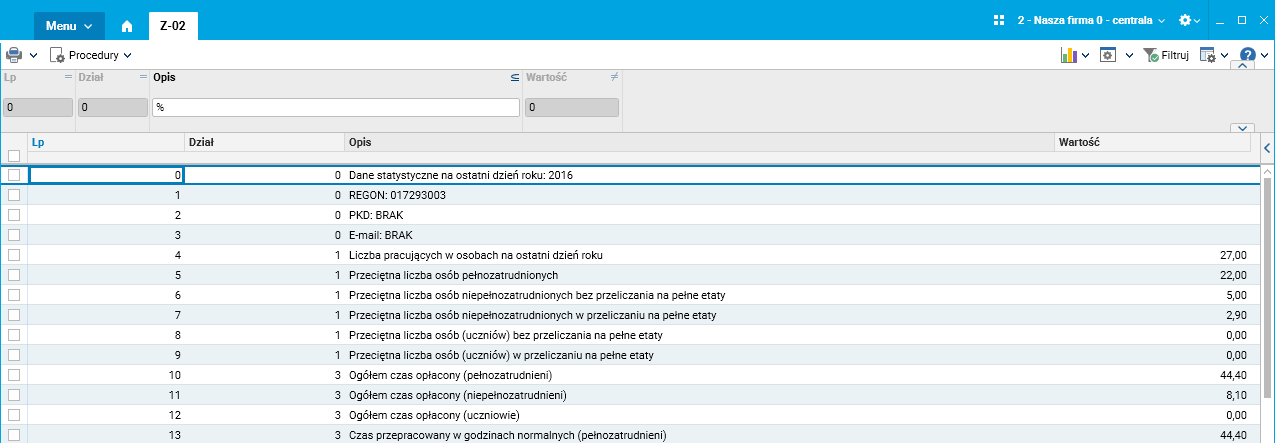 Zmiany w sprawozdaniu GUS Z-02 < Wróć do poprzedniej strony | 8 września, 2017 9007 Wprowadzono modyfikacje w zestawieniu GUS Z-02, badającym poziom i strukturę kosztów pracy za rok 2016, które należało złożyć do dnia 18 kwietnia 2017 roku. Rys. Dane do zestawienia GUS Z-02