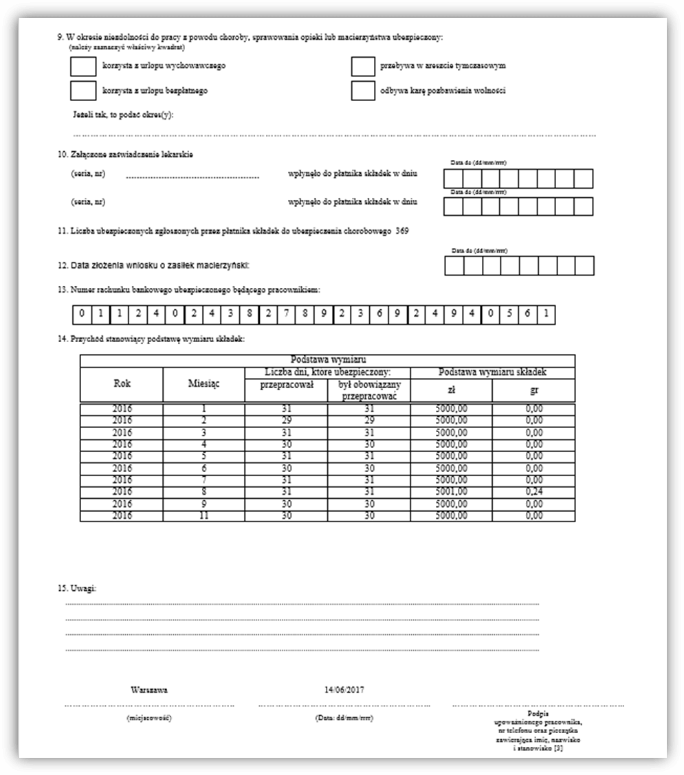 Rys. Przykład zaświadczenia ZUS Z-3a, strona 2
