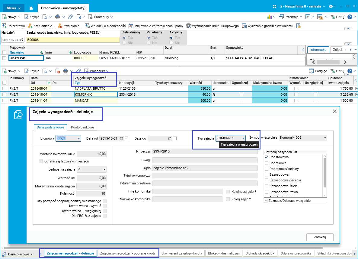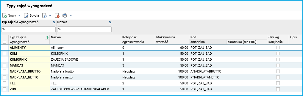 We wszystkich miejscach w aplikacji, w których dotychczas było używane określenie Zajęcia sądowe – a więc w opcjach menu, w nazwach słowników, szczegółów, pól, masek, hintów czy lookupów – obecnie funkcjonuje określenie Zajęcia wynagrodzeń.