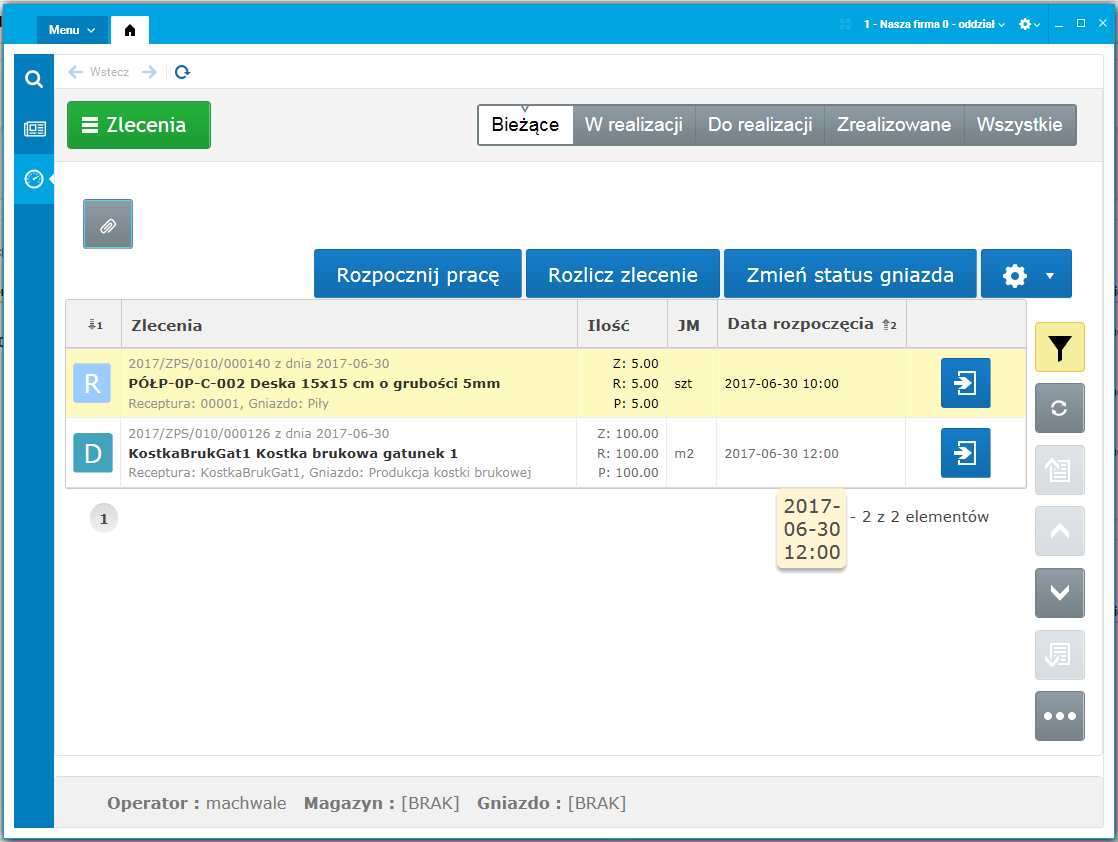 Rys. Dashboard Terminal dotykowy, okno Zlecenia