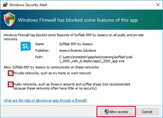2.       Następnie zostanie wyświetlone okno zapory systemu Windows. Należy wyrazić zgodę na komunikację.