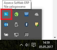 3.       Fakt uruchomienia aplikacji Softlab ERP by Asseco można zaobserwować poprzez rozwinięcie paska zadań – powinna się tam znajdować ikona aplikacji. Po najechaniu kursorem na ikonę zostanie wyświetlony dymek z informacją o stanie zalogowania do aplikacji.