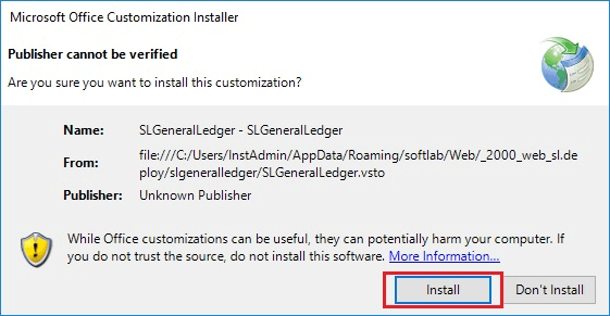 1.       Aby zainstalować Arkusz SL, należy uruchomić aplikację WebAu z parametrem RunInExcel. Pliki rozszerzenia zostaną pobrane razem z plikami aplikacji Softlab ERP by Asseco. Po zakończeniu pracy aplikacji WebAu w tle zostanie uruchomiona aplikacja Softlab ERP by Asseco.