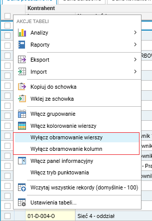 Do menu kontekstowego grida dodano dwie pozycje umożliwiające włączenie oraz wyłącznie obramowania wierszy oraz kolumn.