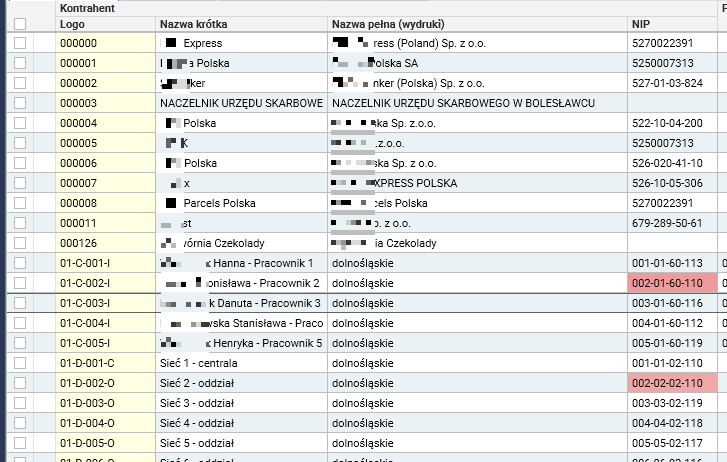 Rys. Wygląd grida z włączonym obramowaniem kolumn oraz wierszy